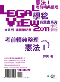 憲法考前精典整理有聲書I,內附完整課程光碟。學稔只要你用最短的時間學會「解題」+「抓爭點」也就是讓你用最短的時間、最少的金錢學會如何考上以完整書籍為主,輔以 MP3 課程快速建立體系最有效的自修產品 強勢登場